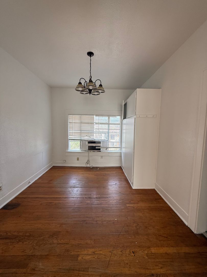 Charming one-bedroom, one-bath home featuring original hardwood floors and fresh interior paint throughout. The inviting living area offers a comfortable space to relax or entertain, while the dining kitchen provides a dedicated area for meals and gatherings. With its classic character and refreshed finishes, this home blends timeless charm — perfect for comfortable everyday living.
